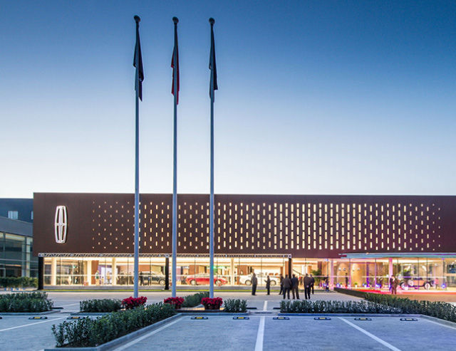 El exterior del museo de 15.000 metros cuadrados, se inspiró en uno de los primeros concesionarios de Lincoln, la estructura de 1920 construido al estilo de la arquitectura neoclásica. La nueva estructura del museo también integra las piedras reales de la entrada principal de la sede original de Lincoln.